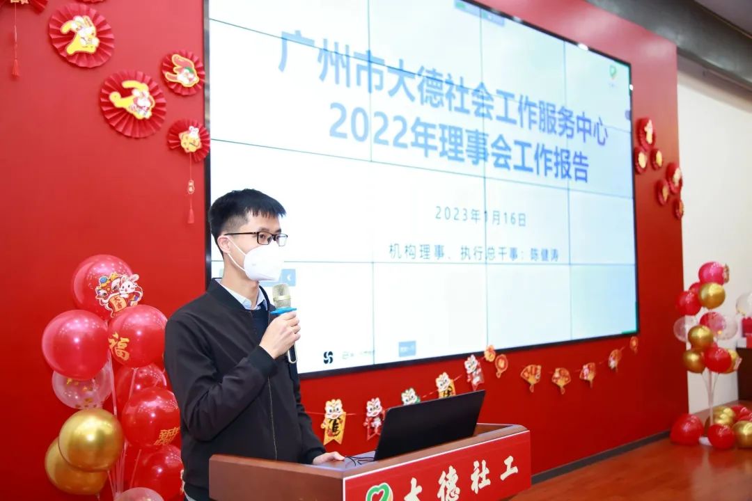理事长为年会作新年寄语,肯定了大德社工2022年度取得的优异成绩,同时提出了四点希望:一是要进一步完善顶层设计,推动服务出新出彩;二是进一步壮大社工团队,做实做强项目服务;三是进一步扩大服务平台,辐射更多群体;四是进一步显现服务功能,彰显社工专业价值。最后鼓励大德社工在新一年继续保持开拓进取、积极向上的精神风貌,勇担新使命、奋进新征程、谱写新辉煌!