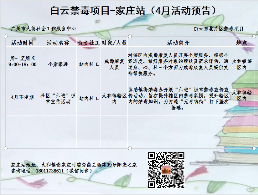 白云区禁毒专业社工服务采购项目2023年4月活动预告